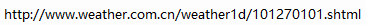 然后就是101270101这串数字编码,这其实是成都的城市编码,我当时看了一下中国气象网的源文件,并没有找到所以城市的编码,无奈只好问问度娘,下面我把城市编码放上来