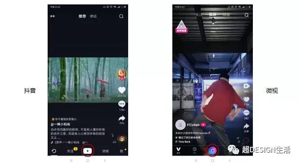 还是用抖音和微视分析,共性就是主要操作和架构是差不多的,形成这个的原因是用户已经被培养出使用习惯,而差异就是微视将关注移动到上部分的标签栏中,底部的导航栏加入了发现。这就是微视与抖音的最重要的区别,腾讯进行了资源的组合与分类。这也算是腾讯的创新点。(虽然很鸡肋)