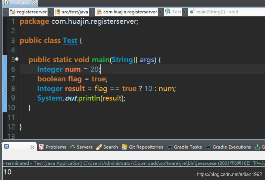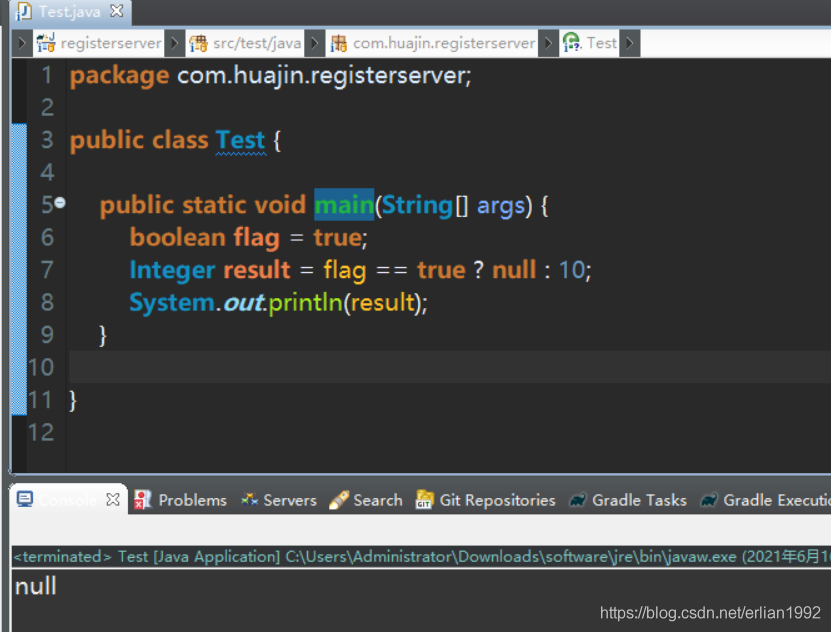 情景四:将num赋值为null,将flag赋值为true,num和10调换位置