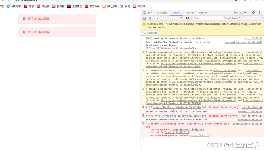 查询报错原因,有说让清浏览器缓存的,有说让关闭防火墙的,我重启项目就好了