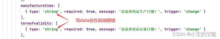 将检验规则中的 type :date改为string或直接去掉,string必须小写