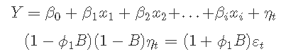 ARIMAX或回归ARIMA是ARIMA模型的一个扩展。在预测中,这种方法也涉及自变量。ARIMAX模型表示输出时间序列由以下部分组成:自回归(AR)部分,移动平均(MA)部分,差分整合(I)部分,以及属于外生输入(X)的部分。外生部分(X)反映了将外生输入的现值