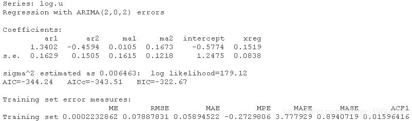 其中εt是一个白噪声序列。ARIMAX模型有两个误差项,一个是回归模型的误差,我们用jt表示,另一个是ARIMA模型的误差,我们用εt表示。只有ARIMA模型的误差被认为是白噪声。