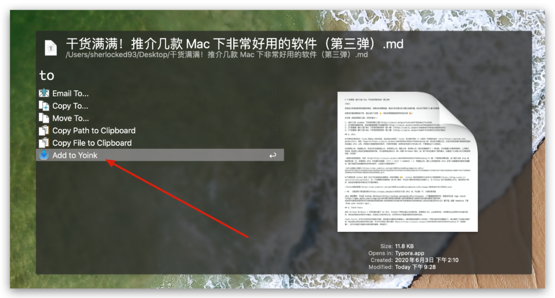 Yoink[22] 是收费应用,平时 50 块,可以考虑在做活动的时候买,或者你有钱可以支持一下,总之是个好工具,如果你屏幕比较小又经常遇到拖拽文件的场景,可以考虑入一个。