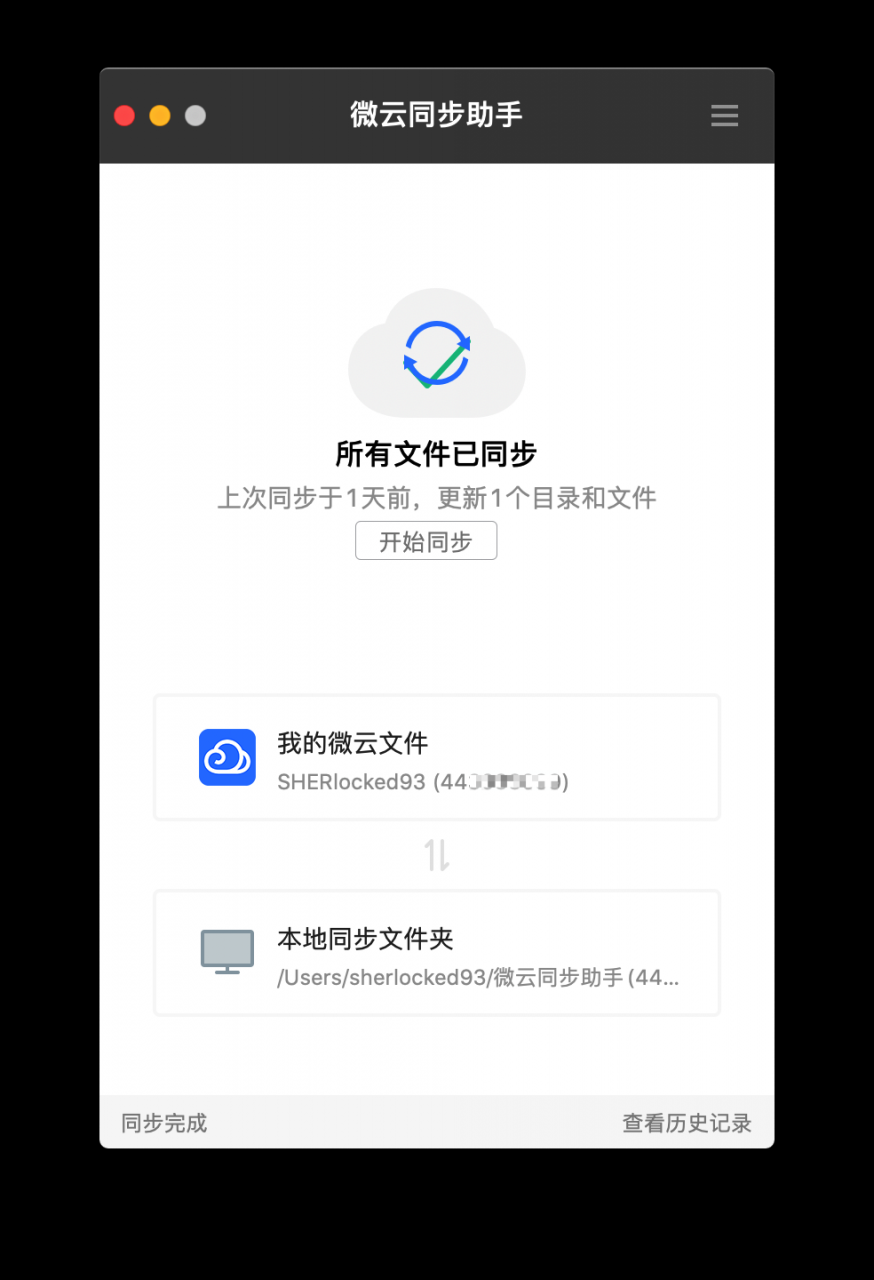 一开始我希望找一个类似于 iCloud 那样可以自动同步某个指定文件夹的,而且可以在 Win/Mac 多系统都可以同步。经过一番寻找,找到一个很好用的微云同步助手,可以把我 PC 上某个文件夹和云盘里的文件夹保持同步,在多端也可以顺利工作,我经常用来当 U 盘用,或者保存一些配置文件什么的。