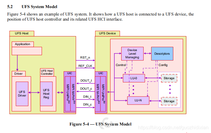 注1:对于UFS Devices来说,每个UFS Devices有多个Lun, 每个Lun有一个Command Queue(命令队列), 命令队列深度一般为32,UFS Devices收到UFS Host的Command(一般来说一个Command Request就是一个Task)之后,会将这个命令放到命令队列里,队列最多存放32个Command Request. UFS Device一般一次执行1个Command Request, 执行完一个之后再执行下一个。