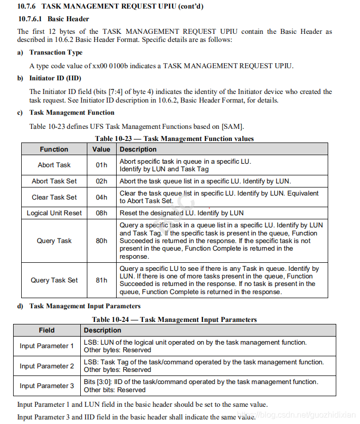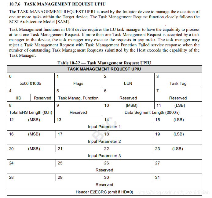 注2:TASK MANAGEMENT REQUEST UPIU管理UFS Device的Task,其实就是理解为管理UFS Host给UFS Device下发的Command Request.
