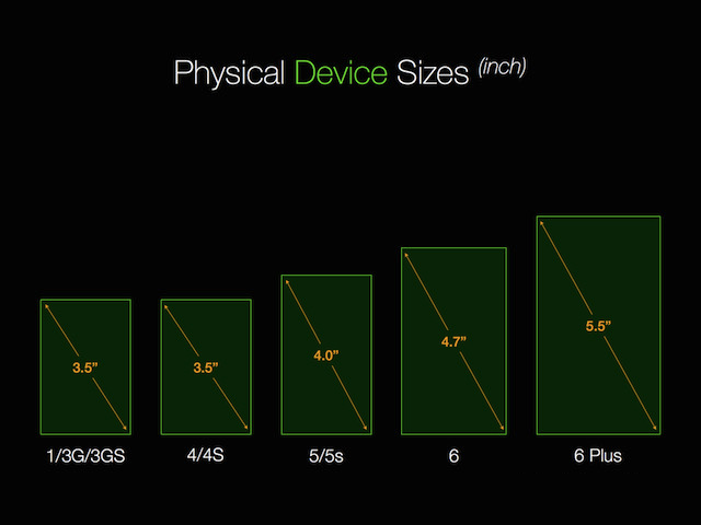 后来在iPhone4中,同样大小(3.5inch)的屏幕采用Retina(视网膜)屏幕显示技术,横、纵向方向像素密度都被放大到2倍,像素分辨率提高到(320 * 2) * (480 * 2) = 640 * 960,显像分辨率提高到iPhone3GS的4倍。iPhone6Plus中横、纵向方向像素密度都被放大到3倍,显像分辨率提高到iPhone3GS的9倍。
