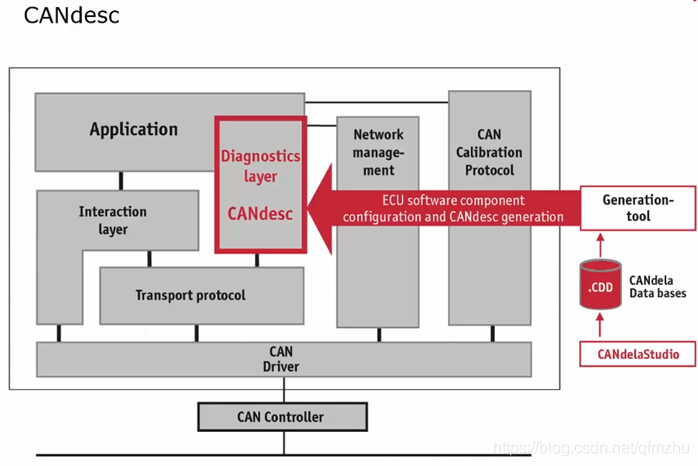 嵌入式代码首先第一种Nun Autosar标准的Command代码,Command里面诊断的部分叫做CANdesc,它的一个实现方式就是将CDD文件导入到我们的GENy工具里面,然后去生成诊断相关的一些底层代码,以及应用层接口。