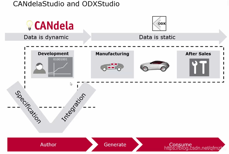 到了他的生产售后阶段,它们会有自己的MDX相应的一些验证工具,会有他们自己相应的一些售后工具,EOL工具等等,那他们就通过CDD导出的MDX文件来应用到它们不同的一些部门里面,应用到不同的工具里面,那这个呢也符合我们刚刚说的前期开发阶段使用CDD文件。而生产售后阶段呢,就使用它们自定义的格式文件。