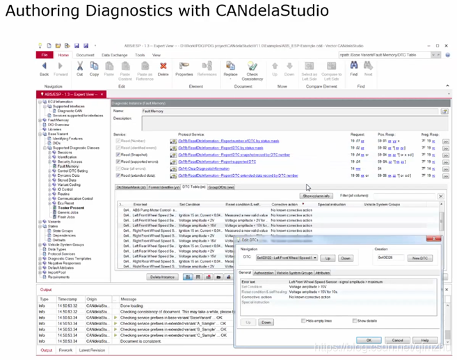 因为机器对于数据的解读,不会像人工解读有那么多经验理解在里面,可以很好的把数据传递到每一个阶段,从而保证整个开发阶段的数据的一致性,有效的缩短开发周期,机器可读的诊断数据库其实就是将传统的Excel调查表等信息编辑成CDD或ODX文件。CDD是Vector私有的一种诊断数据库格式;ODX是国际标准的诊断数据交互格式。CANdelaStudio编辑CDD文件,以及也可以导出ODX文件,ODX Studio用于编辑ODX文件,诊断数据库的编辑其实就是诊断需求的定义。在需求定义完后,代码实现可以通过诊断数据库生成诊断相关的代码以及应用层接口函数。Vector的诊断部分代码包括:Non_Autosar标准的CANdesk;以及Autosar标准的MICROSAR DIAG。
