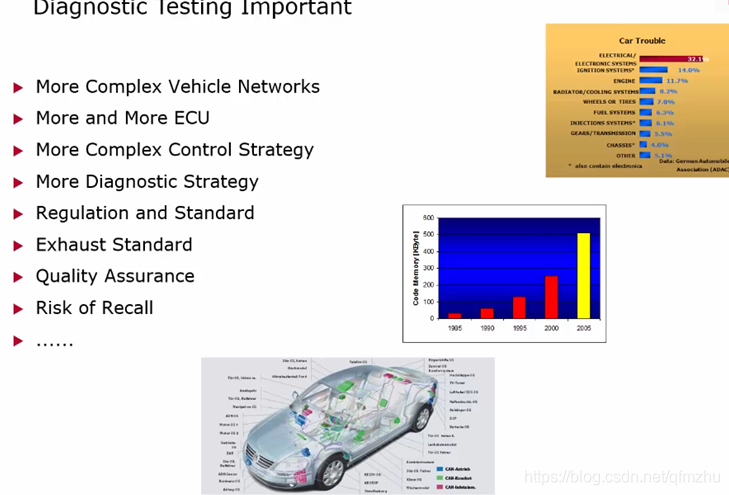 诊断功能的实现以及测试,在车辆开发中越来越重要,原因呢,是因为现在的汽车网络越来越复杂,ECU越来越多,控制策略越来越复杂,每个国家也对汽车排放有相关的法规要求,为了避免故障无法排查等问题,就需要在开发阶段对车辆的诊断功能的实现和验证进行严格的处理,避免后端无法很好的使用诊断功能。