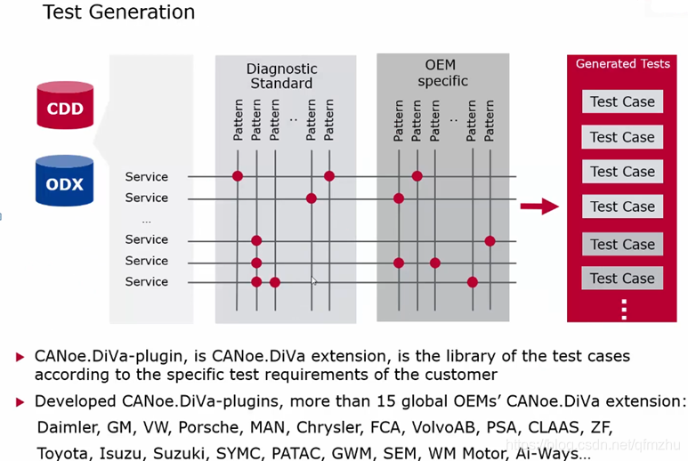 自动化测试是实现,我们可以用CANOE.Diva这个工具,他可以在导入诊断数据库ODX或者CDD文件的基础上去,去自动生成诊断相关的测试用例,可以覆盖UDS,KWP,GMW3110或者OBD等相关的一些测试用例。