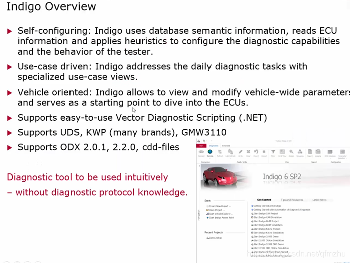 CANOE,CANape,这些工具不是主要用来做诊断的,但是呢,他们都可以在加载数据库的基础上手动收发一些诊断服务,或者去编写一些诊断相关的脚本,那我们现在具体介绍Indigo工具,Indigo是我们参数化的诊断仪,但是它是一个基于PC机的诊断仪。
