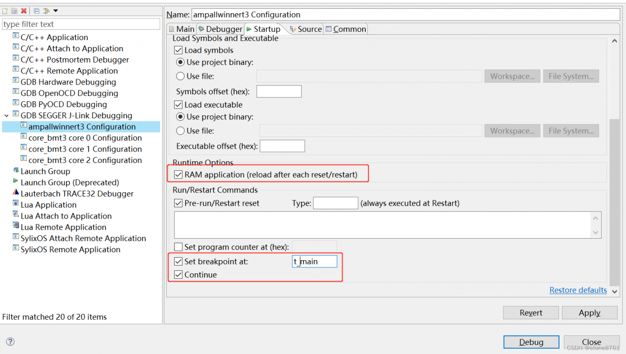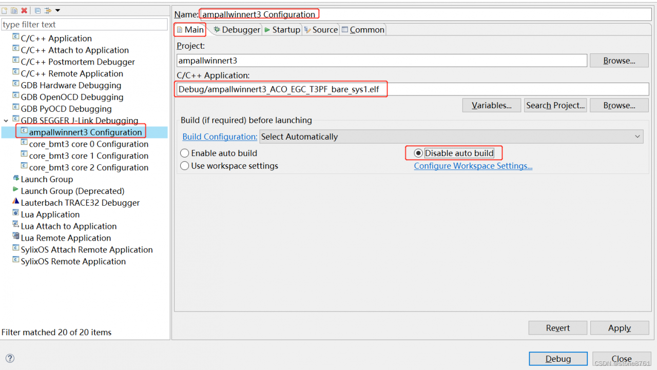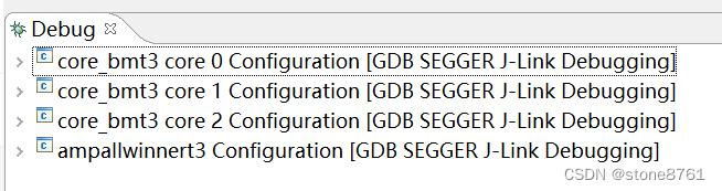 5、右键 ampallwinnert3 工程,点击 Debug As ---> Debug Configurations... 双击 GDB SEGGER J-Link Debugging 新建一个调试实例。配置 core3 调试参数,如下图: