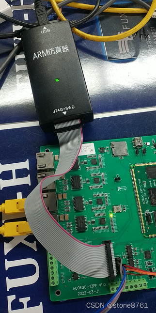4、将 JLink V9 调试器接入板卡调试口(这里使用 JTAG 接口,也支持 SWD 接口),如下图所示。