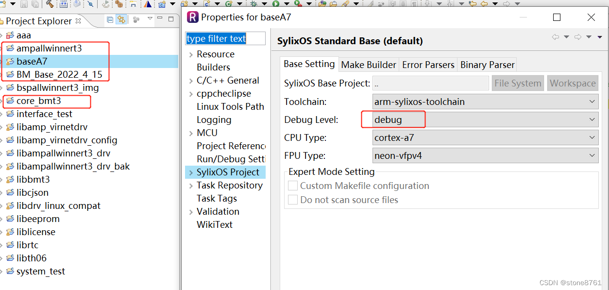 1、将裸核与系统核的 Base 和 BSP 改为 Debug 模式,重新编译;