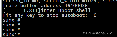1、系统上电后在裸核串口(UART0)上敲回车进入 u-boot 界面: