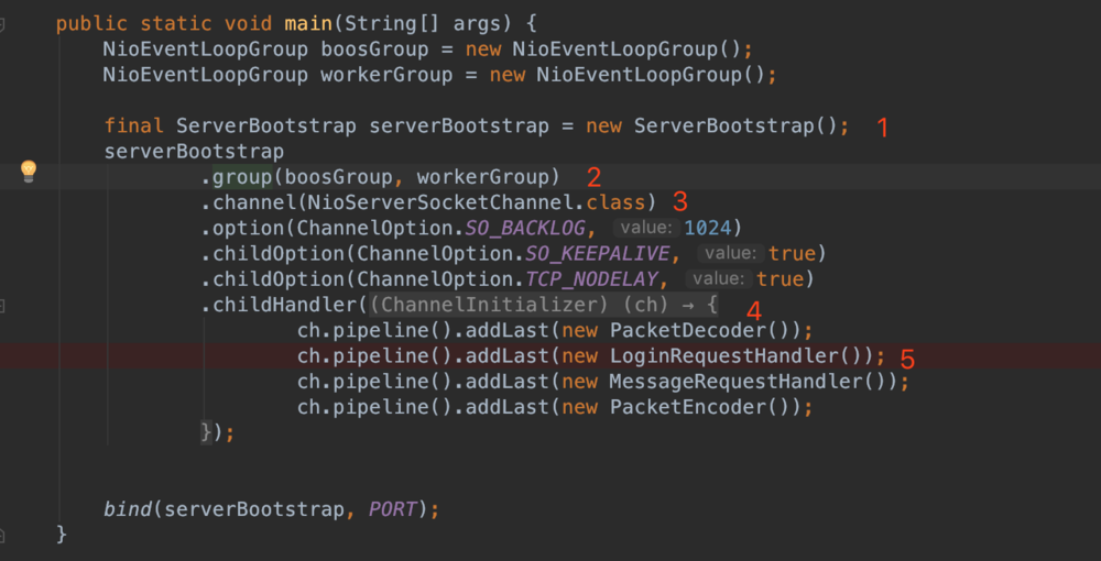 3、设置并绑定服务端的channel