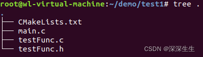 其中,CMakeLists.txt和main.c在同一目录下,内容修改成如下所示: