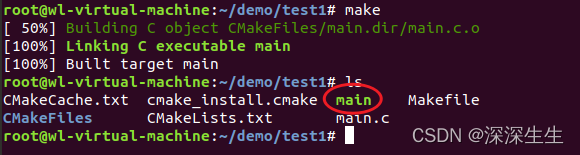 在终端下切到main.c所在的目录下,然后输入以下命令运行cmake: