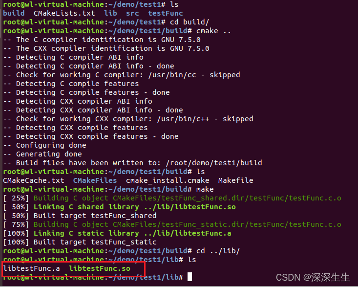 我们会在build目录下运行cmake,并把生成的库文件存放到lib目录下。