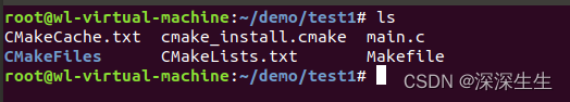 cmake .可以看到成功生成了Makefile,还有一些cmake运行时自动生成的文件: