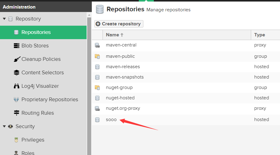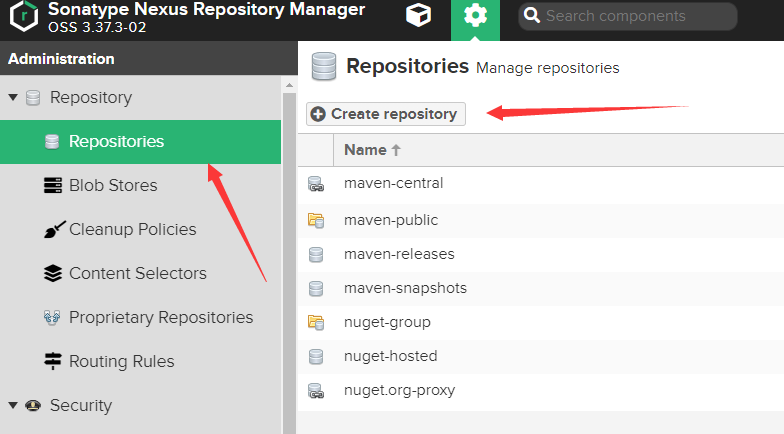 1、点击左上角repositories->create repository。