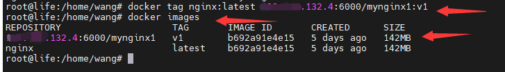 docker tag 原镜像名称:版本 仓库主机ip:6000/新镜像名字:版本号然后输入 docker images 查看是否打好新镜像标签。