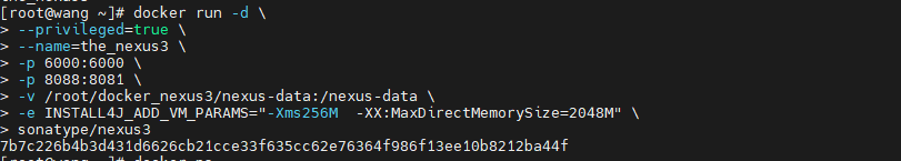 -v /root/docker_nexus3/nexus-data:/nexus-data 挂载本地目录到容器内部目录,记住本地目录一定是绝对路径7、用如下命令: