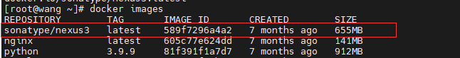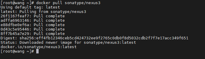 docker pull sonatype/nexus3不输入标签默认拉取最新的镜像,如下: