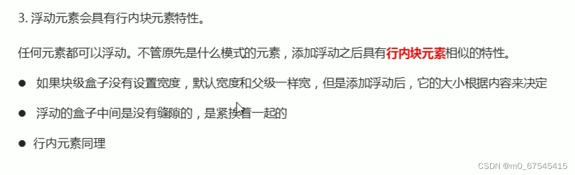 浮动特性(重难点)1 最重要的特性代码展示: 没有浮动时 有浮动时 第二个特性 没带浮动代码展示 带了浮动代码展示 第三个特性 版权声明:本文为m0_67545415原创文章,遵循CC 4.0 BY-SA版权协议,转载请附上原文出处链接和本声明。原文链接:https://blog.csdn.net/m0_67545415/article/details/126919706
