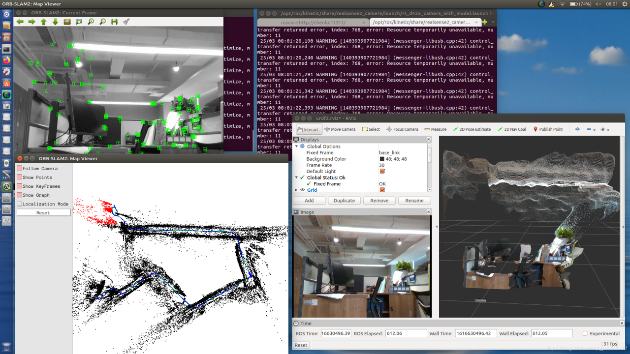 从零开始跑ORB_SLAM2(三) 使用Realsense D435相机跑ORB_SLAM2生成稀疏点阵