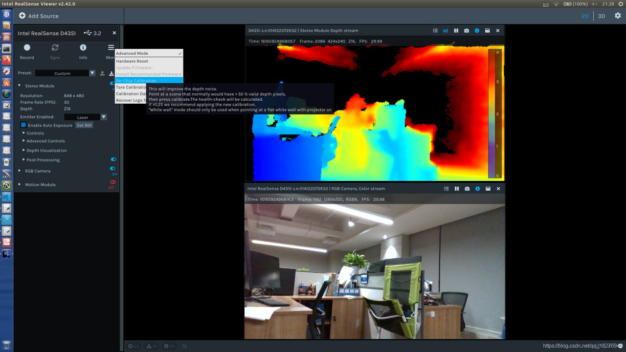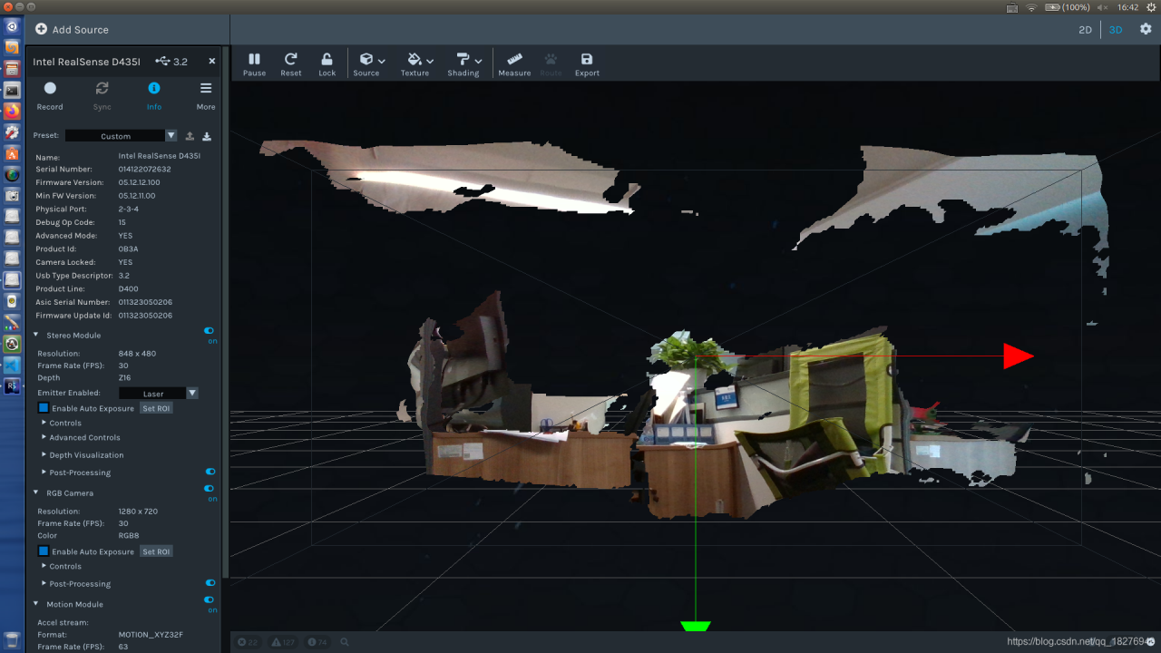 realsense-viewer查看原始RGB图像及深度图点云图、IMU姿态等信息 用realsense-viewer进行固件升级有可以直接运行的例程代码