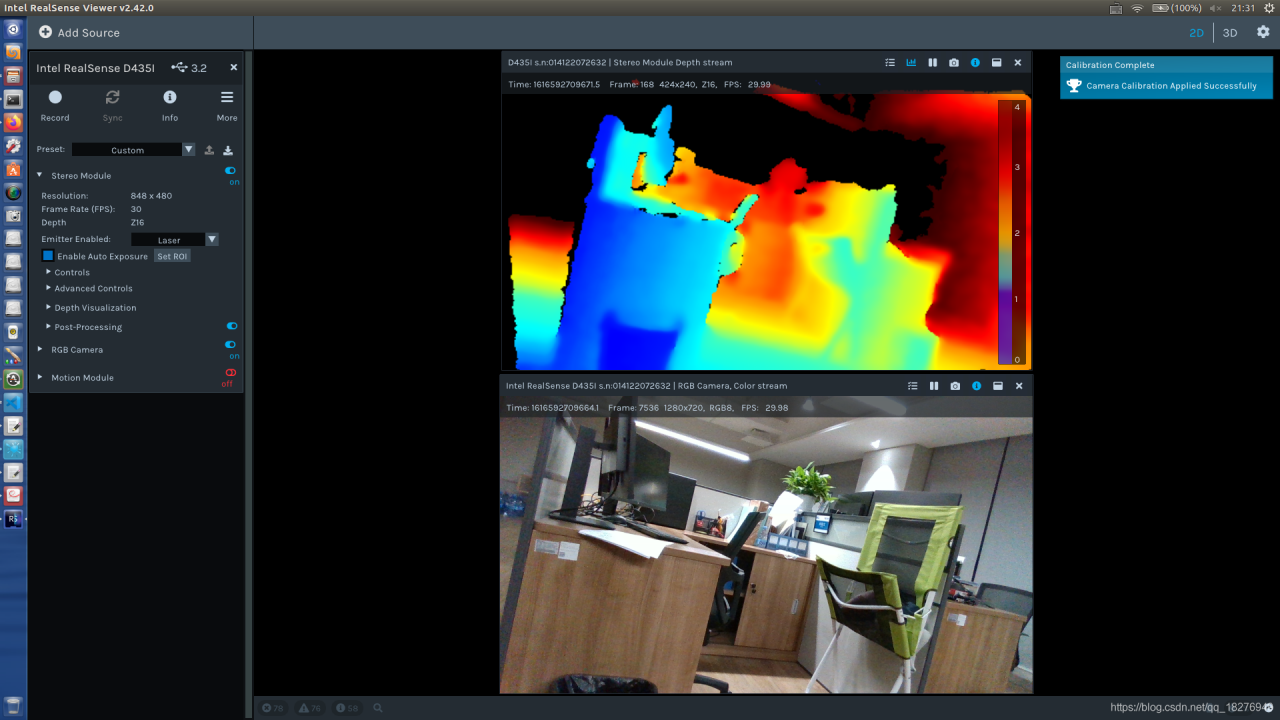 运行指令realsense-viewer打开调试GUI界面。很漂亮,很友好的界面!