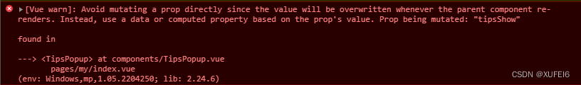 问题:在传值給父组件的时候修改了props的值,然后报错如下:
