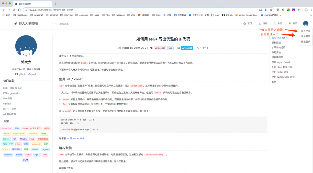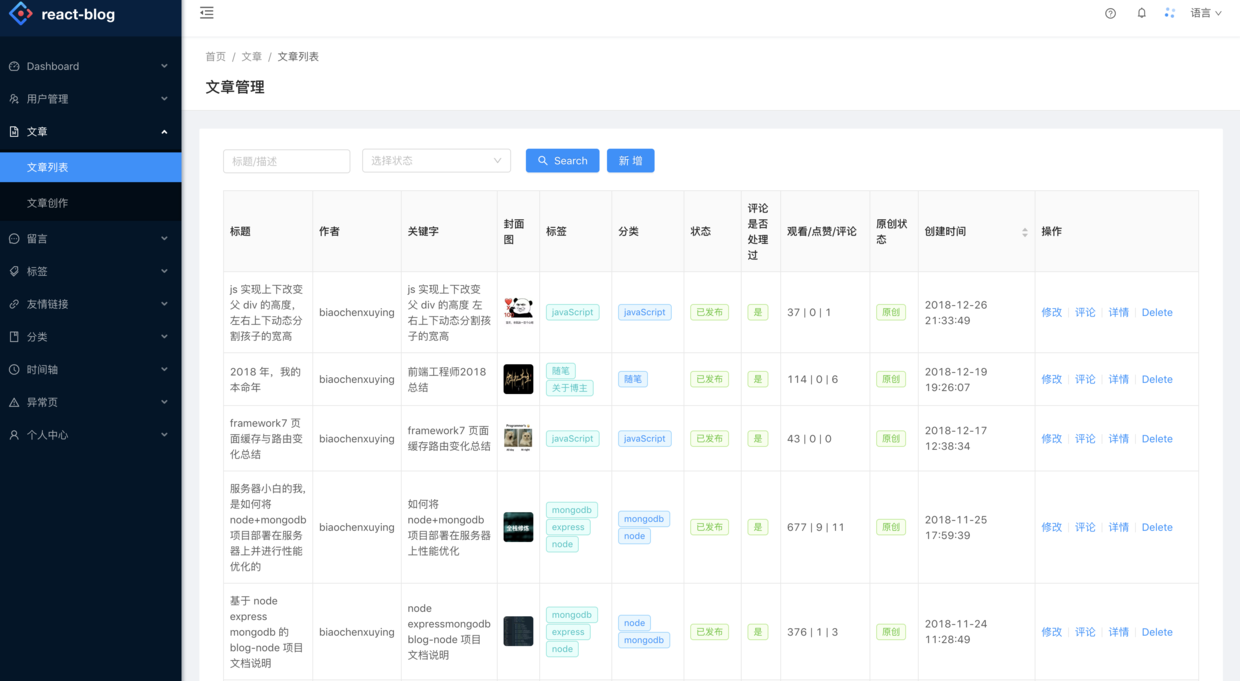 blog-react 是基于 typescript+koa2+react 的个人博客,效果图如下:
