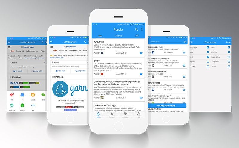 GitHubPopular 是一个用来查看GitHub最受欢迎与最热项目的App,它基于React Native支持Android和iOS双平台。