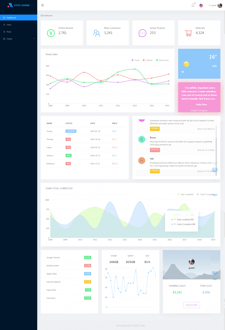 antd-admin 是基于 React + Ant Design 开发的一套优秀的中后台前端解决方案。