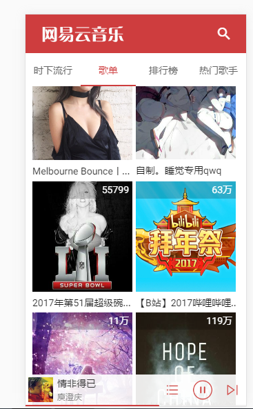 netease-clound-webapps 是基于传说中的VUE全家桶(vue vue-router vuex)、axios、Muse-UI(一个基于Vue2.x的material design 风格UI框架),高仿网易云音乐的 webapp,只实现了 APP 的核心功能。