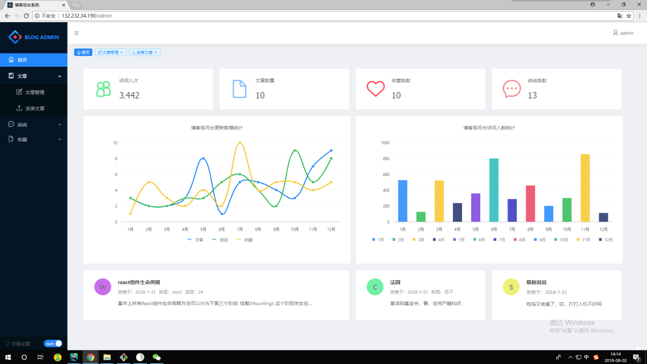 blog-react-admin项目是基于蚂蚁金服开源的 ant design pro 之上,用 react 全家桶 + Ant Design 的进行再次开发的。效果图如下: