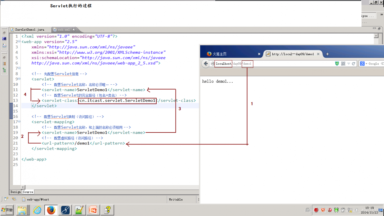 <servlet-class>cn.itcast.servlet.ServletDemo</servlet-class>