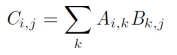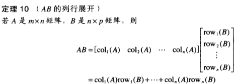 矩阵乘法:若A是m*n矩阵,B是n*p矩阵,B的列是b1,...bp,则乘积AB是m*p矩阵。