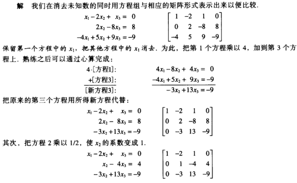 其中这些方程组的“增广列”都放在A的右边,构成矩阵