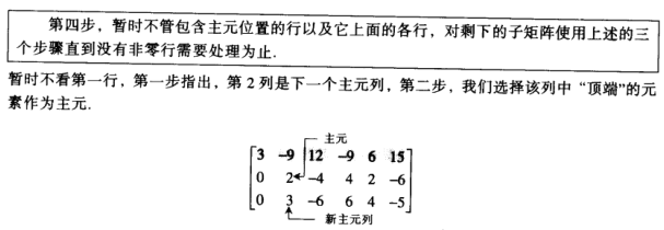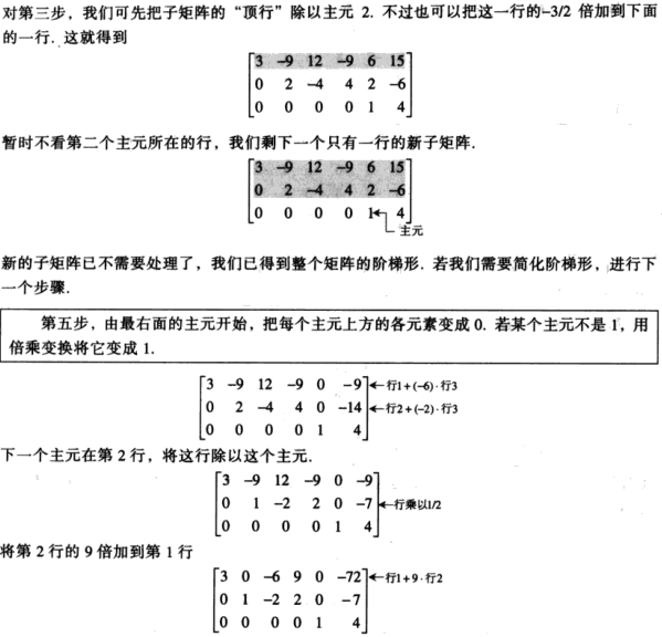 第1~4步称为行化简算法的向前步骤。第5步称为向后步骤