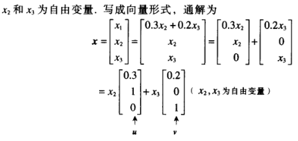 非齐次方程组:当非齐次线性方程组有许多解时,一般可表示为参数向量形式,即由一个向量加上满足对应的齐次方程的一些向量的任意线性组合的形式