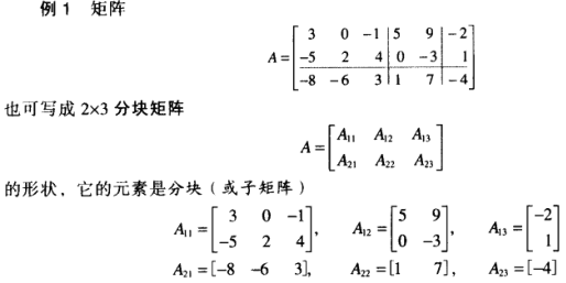 可以把矩阵看做一个数的矩形表,可以把它看做一组列向量。因此想考虑A的其他分块,用水平线和竖直线分成几块。分块矩阵也出现在线性代数的现代应用中,因为这些记号简化了许多讨论,并使矩阵计算中许多本质的结构显露出来。