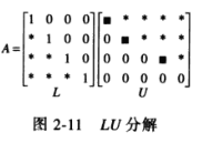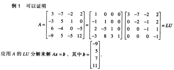 当A=LU时,方程Ax=b可以写成L(Ux)=b,把Ux写成y,可以由解下面一对方程来求解x: