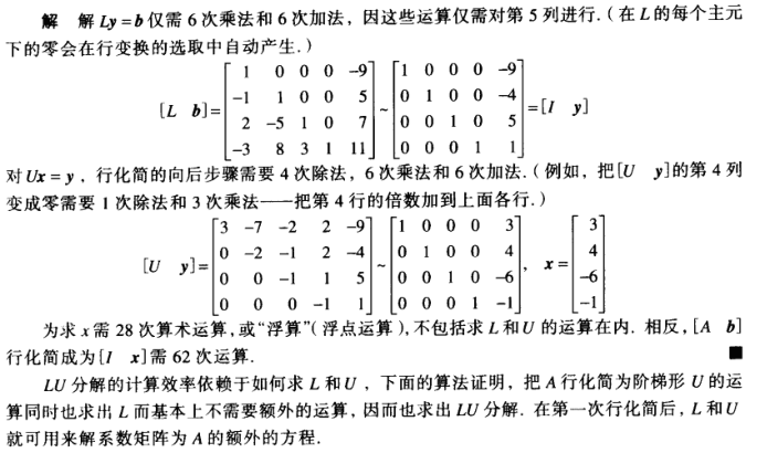 首先解Ly=b,然后解Ux=y求得x,每个方程都比较容易解,因为L和U都是三角矩阵