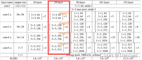 我们把ResNet34中间结构部分截取出来,从stage1开始往下,其具体结构如下图: